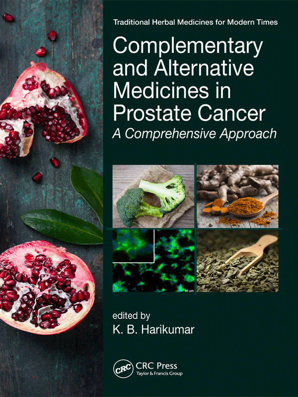 Prostate cancer: an introduction. Prostate cancer epidemiology. Molecular biology of prostate cancer. Current treatments and reasons for treatment failure. Preclinical status of novel approaches for prostate cancer therapy. Triterpenoids and sesquiterpenes. Curcumin. Resveratrol.Complementary and Alternative Medicines in Prostate Cancer: From Bench to Bedside. Phyllanthus sp: Bitter melon extract. Kava. Plumbagin. Urokinase inhibitors from plants. Chinese Herbal among Prostate Cancer Patients: A Population-Based Study in Taiwan. lternol.Betel leaf.Spice derived anticancer molecules for prostate cancer. Nutraceuticals and prostate cancer. Isoflavinoids. Pomegranate. Green tea. Broccoli. Pomi-T supplements. Other forms of CAM. Yoga and prostate cancer. Acupuncture. Homeopathy. Siddha medicines.
